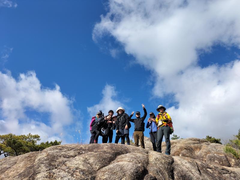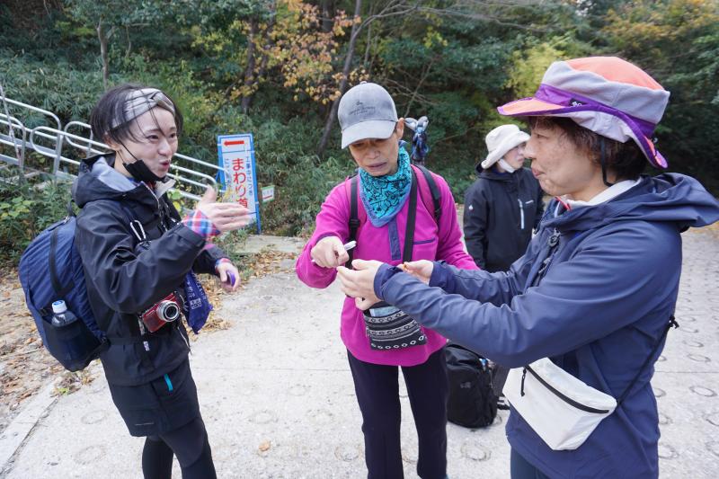 好日山荘からは登山学校校長を務める六甲山に造詣が深い加藤ガイド、アウトドア手話企画-等高線-からは、手話通訳士・登山ガイドの資格を持つ代表・細井ガイドが今回ご一緒下さいました。