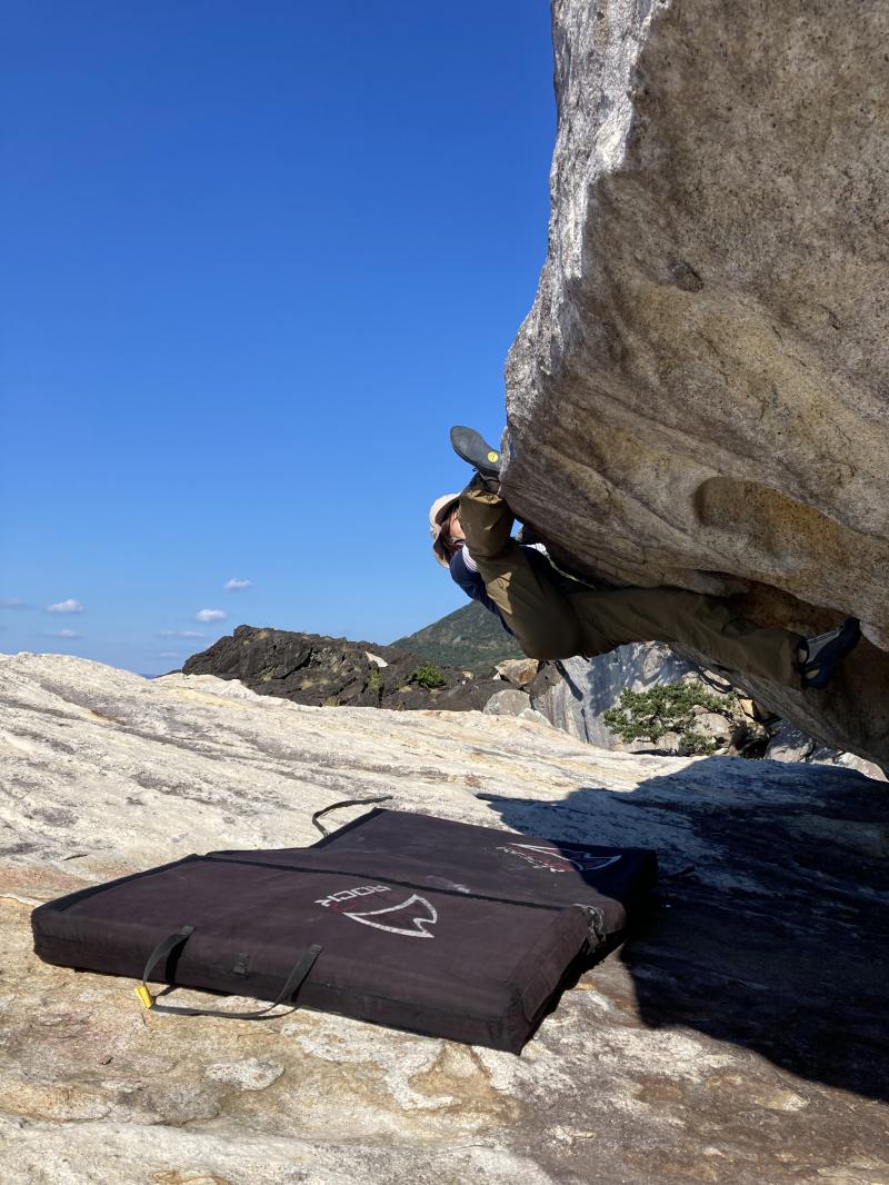 飛行機の時間もあったので難しい課題にはトライできませんでしたが、ポカポカ陽気の中気持ち良くボルダリングができたので満足です。