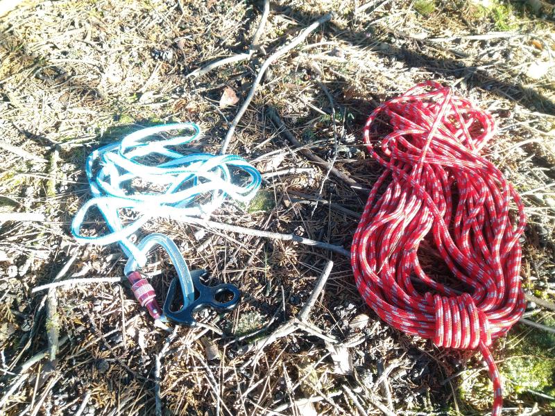 落ち葉の積もった急なホールドの乏しい岩場をを20m登って