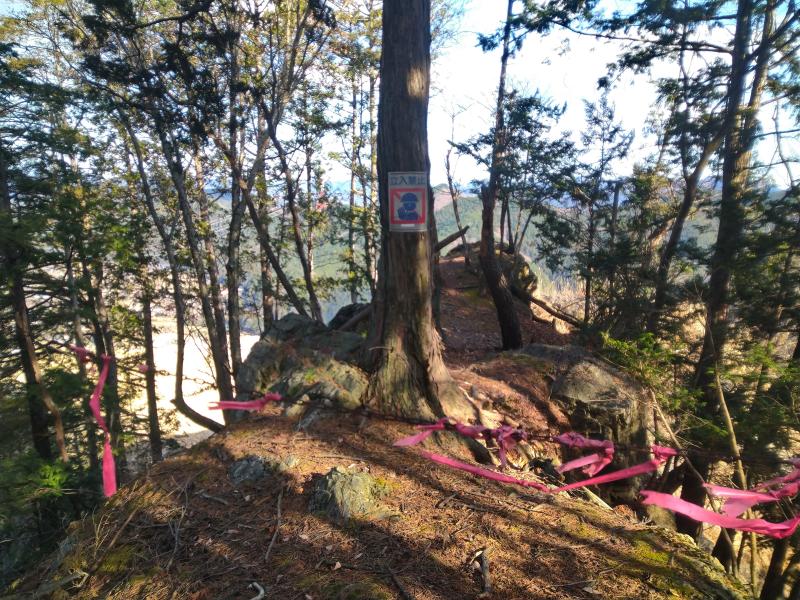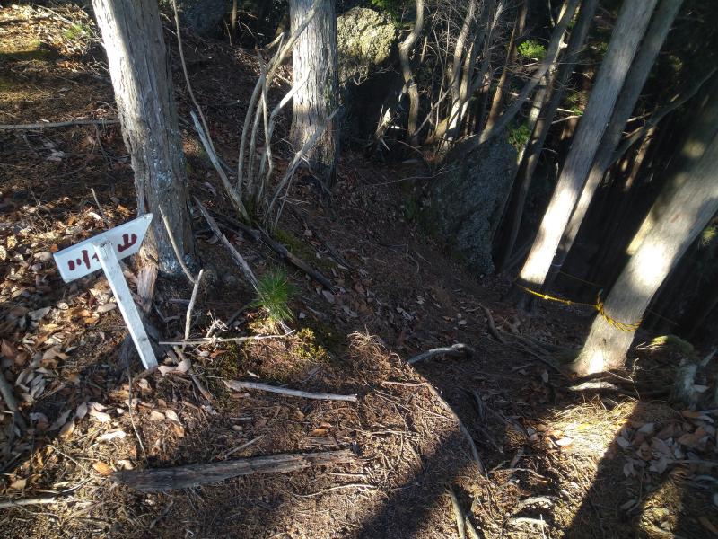 リボンがある。川化林道へ降りる時は鉄塔から林道方向に巡視路を拾うこと。最低コルから先道が悪くなる。山頂直前は岩の痩せ尾根になる。