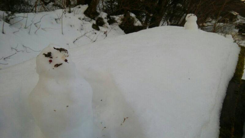 駐車場上のベンチで雪ダルマ作りに夢中になり、ビーコン研修を忘れました。