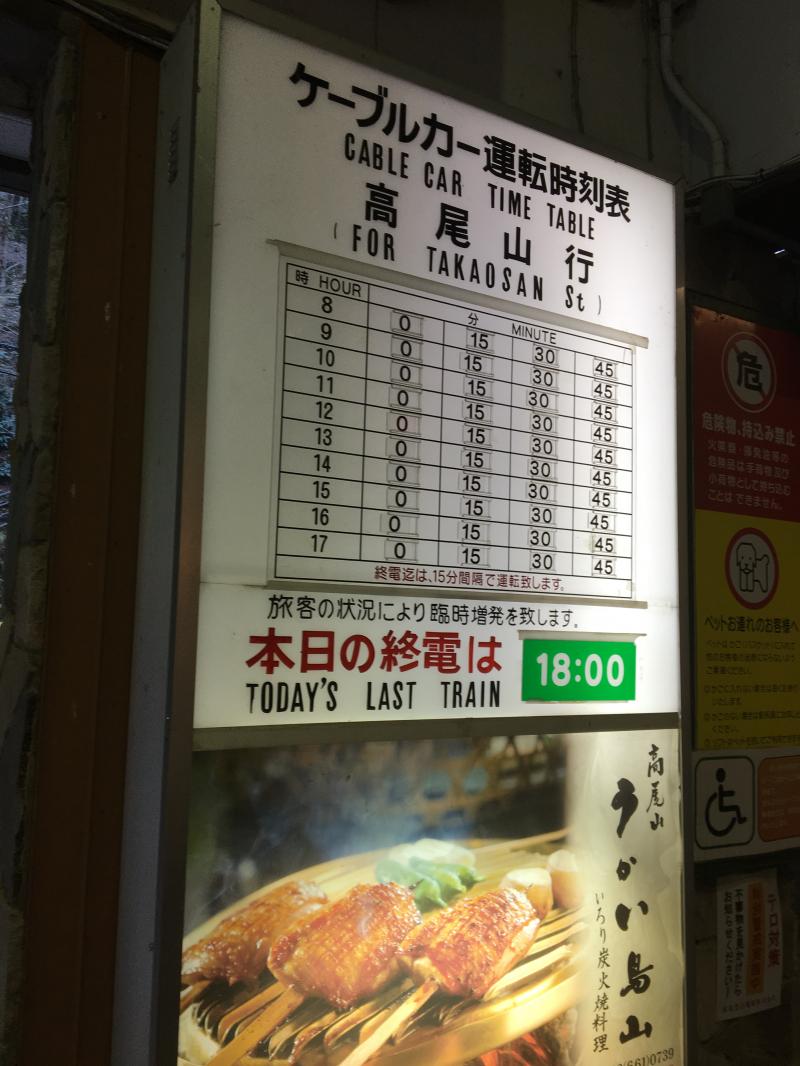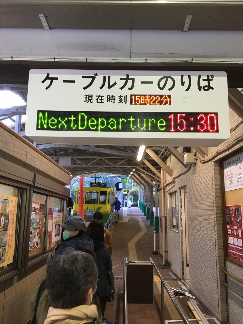 高尾山口駅に到着した時点で15時13分くらいだったため、どんなに走ってもわたしの足では15分のケーブルには間に合わないと思い、すたすた歩いて乗り場へ向かい15時30分のケーブルに乗りました。
