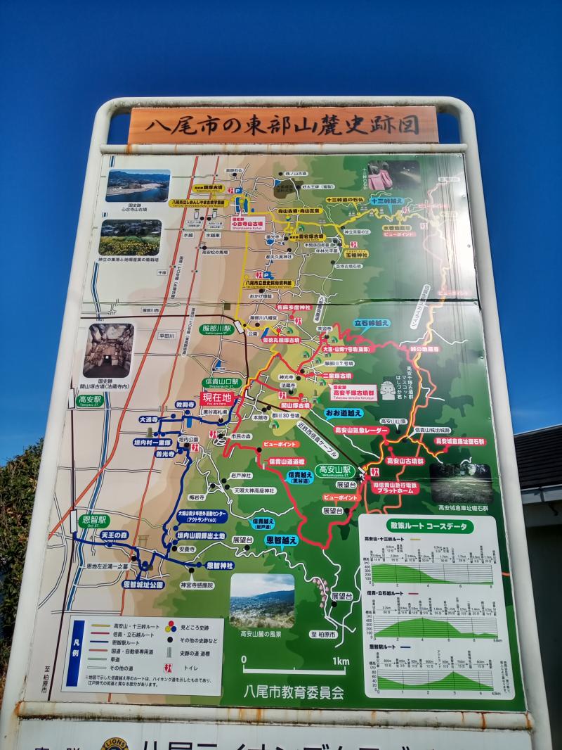 - 信貴山口駅(ケーブルカー7分)高安山駅(15分)高安山(35分)松永屋敷(10分)信貴山址(15分)信貴山朝護孫子寺[しぎさんちょうごそんしじ]に約40分滞在(10分)信貴山門バス停(約10分)高安山駅(ケーブルカー7分)信貴山口駅 【コース合計 2時間30分】