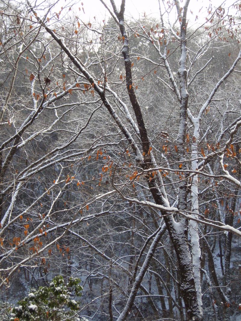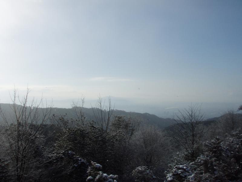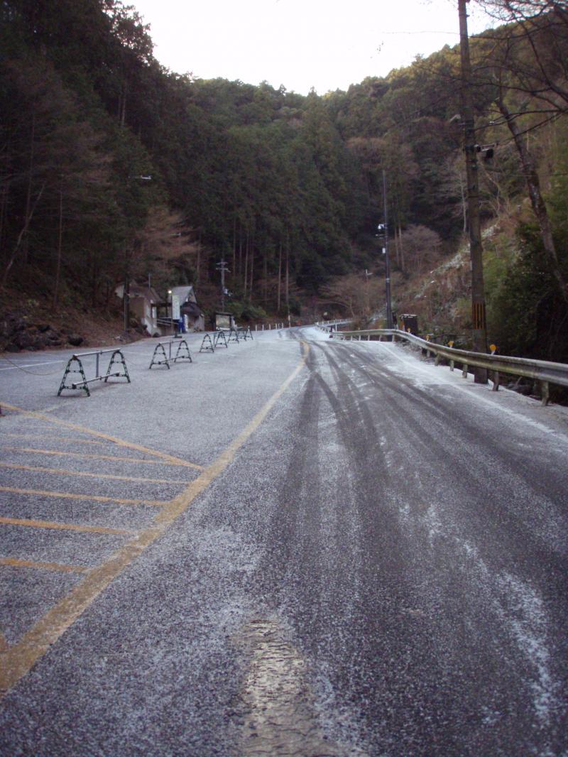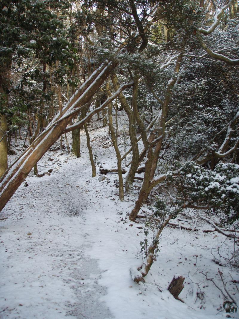 バス停・善峯寺から出発。三密を避ける為、早朝に出発しましたが、昨夜からの雪がうっすら積もっており道路の一部が凍結していました。西山古道の雪はほぼ溶けていましたが、釈迦岳の標高500m地点ぐらいから積雪があり、以後ポンポン山まで積雪は3センチぐらいでした。