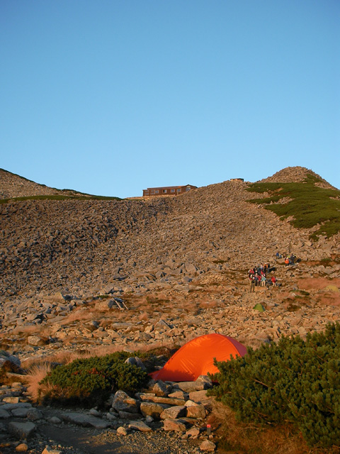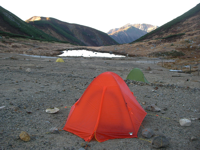 寒暖の差が激しく、日中、日が出るとかなり暖かく感じるのですが、日が沈んだとたん気温はすぐに一桁に。日の出直前に至っては氷点下になり、テントのフライシートがバリバリに凍っていました。しっかりした防寒対策が必要です。シュラフはイスカのエア450Xを持って行きましたが、ちょうど良かったです。