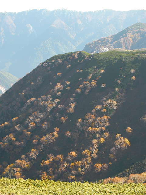 笠ヶ岳から下りに使ったクリヤ谷は長いですが、高度1600~2000m付近のブナ林の紅葉が見事でしばし疲れを忘れさせてくれました。