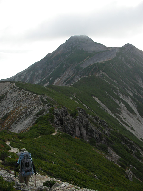 笠ヶ岳からクリヤ谷への下りは浮き石が多く、要注意です。