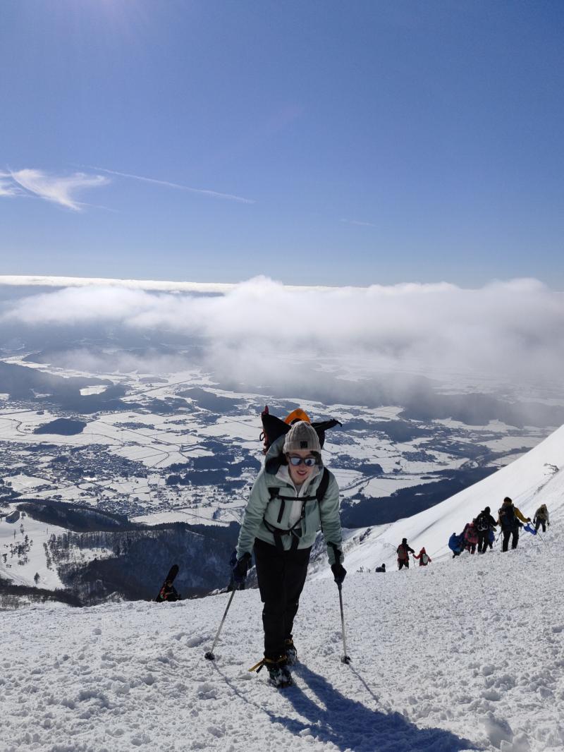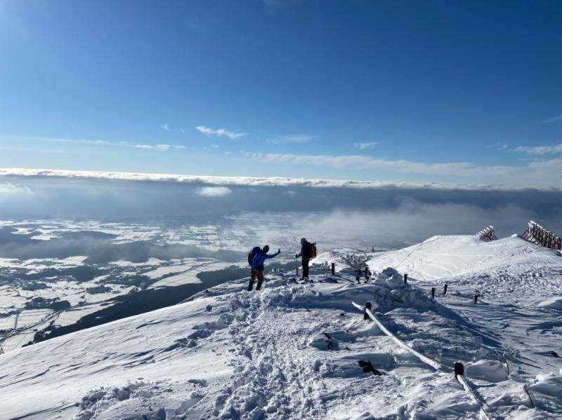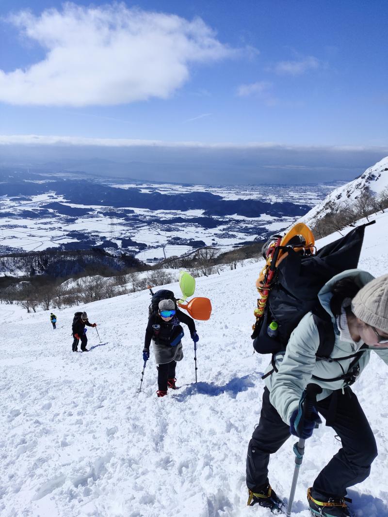でっかい雪団子がくっつき始めたので2合目辺りで12本アイゼンに付け替えましたが、適度に締まった雪なので雪を踏み抜くことも余りなく、歩きやすい状態でした。