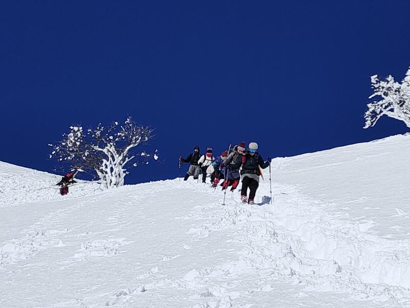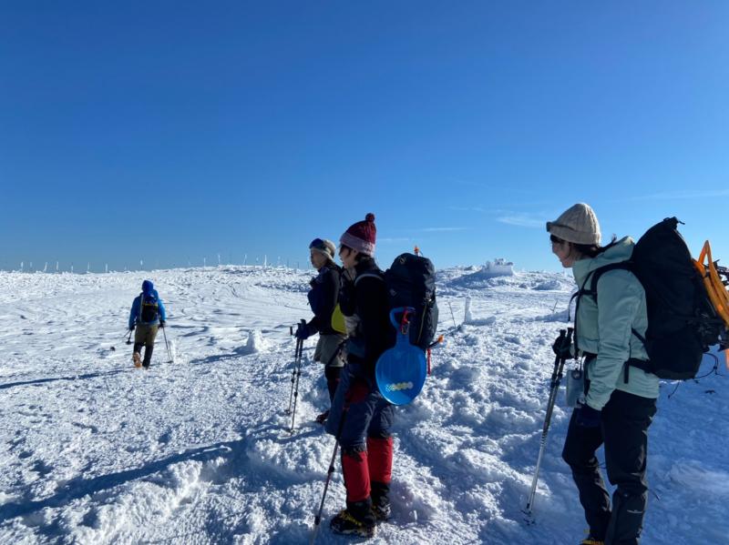 スキー、スノーボード、スノーシュー、ソリと皆さん思い思いに雪山を楽しんでおられました。