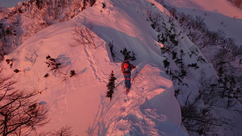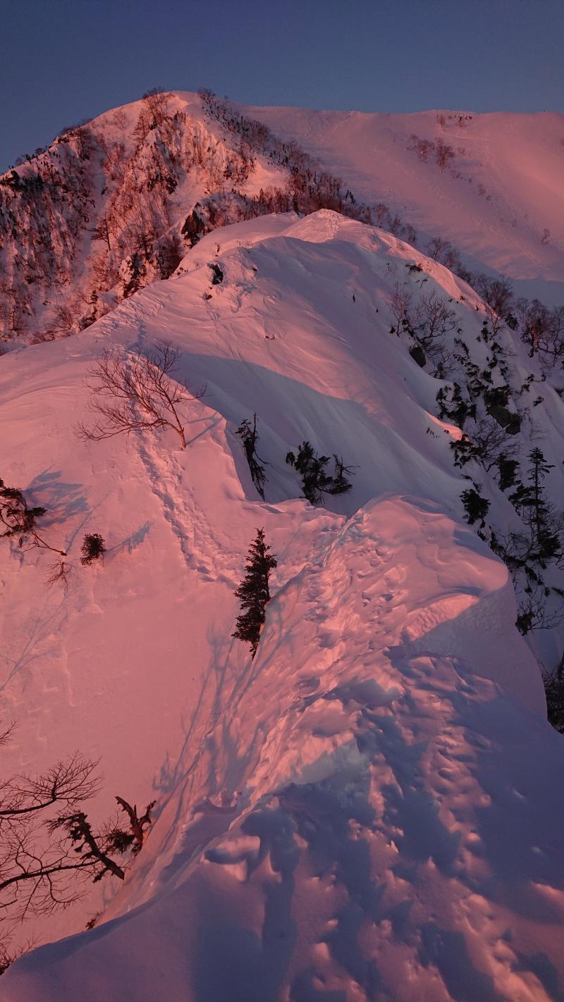 - 雪が締まっているところが多いが踏み抜くところが数箇所有り。ナイフフリッジと呼ばれるところは積雪多くナイフになってなかった。