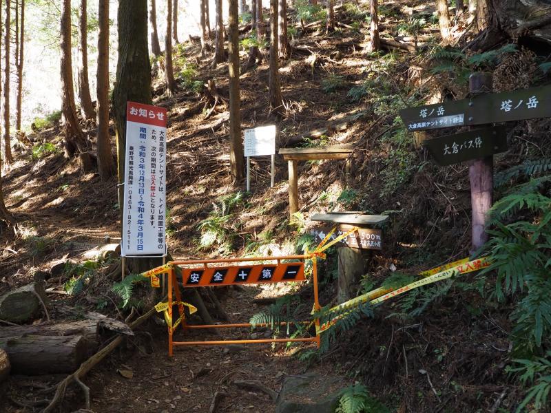 いつもの石だたみをあがり観音茶屋。分岐が封鎖。大倉高原テントサイトには新しくトイレが作られるようですよ。