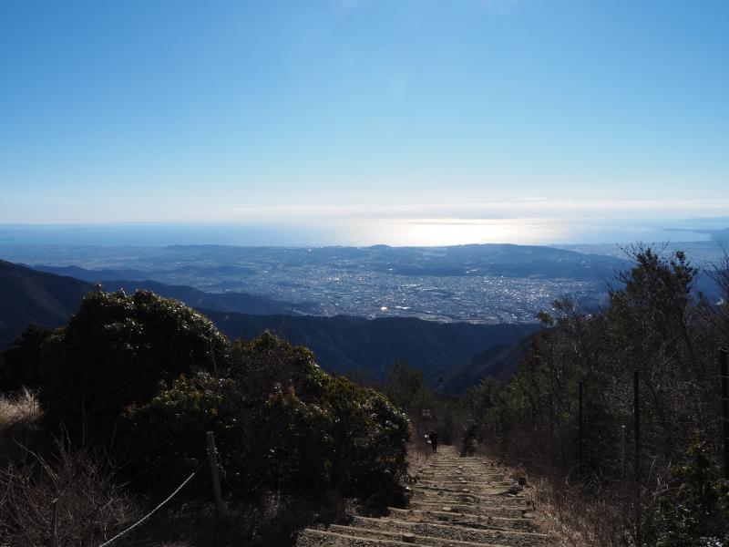 花立山荘への長い階段で振り返ればこちらもいつも通り、きらめく相模湾。