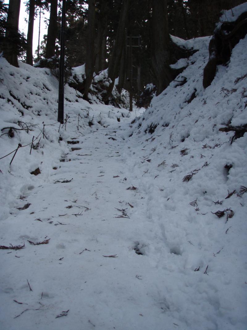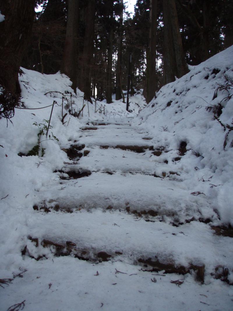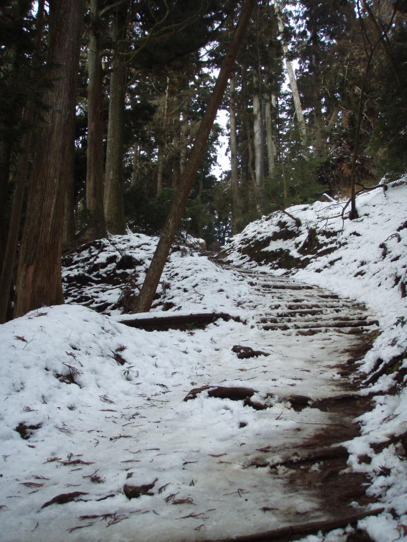 - 表参道は「水尾分かれ」から愛宕神社に至るまでの道が氷結しており、アイゼンとストックは必携です。