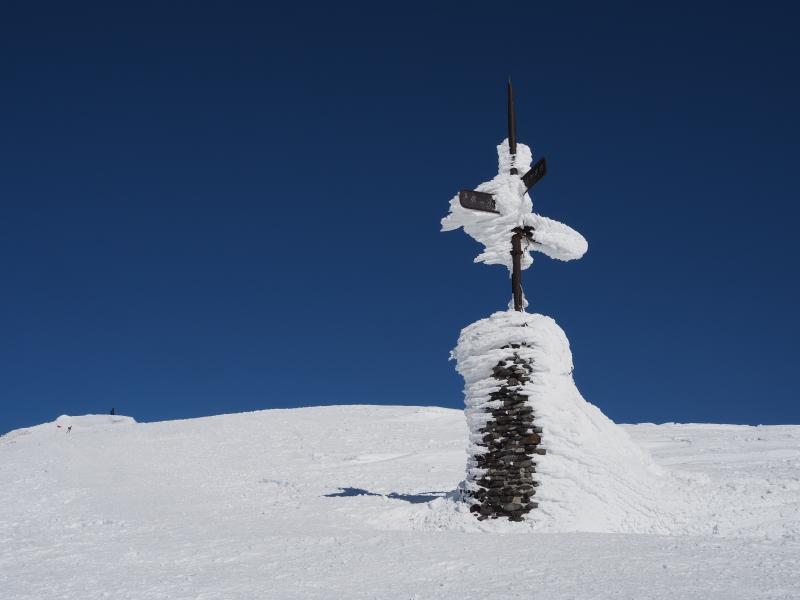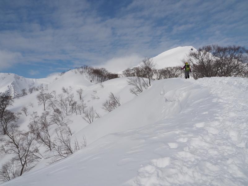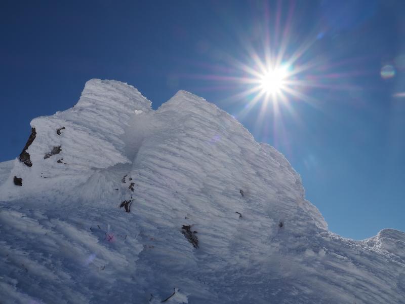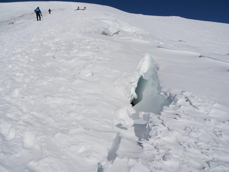 雪庇が張り出しているところもあるので登山道から外れないようにしてください。