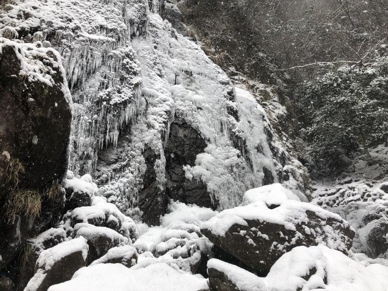 扁妙の滝は少し水の流れはあるものの、見事な氷結です。