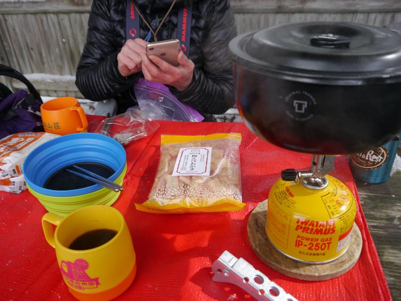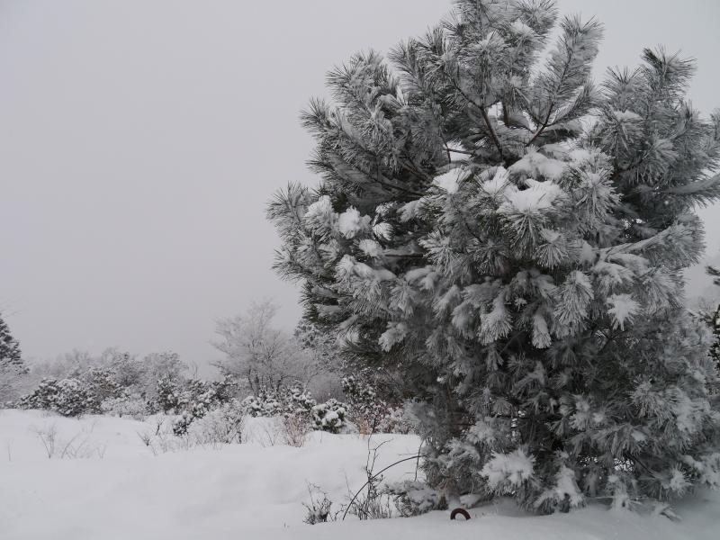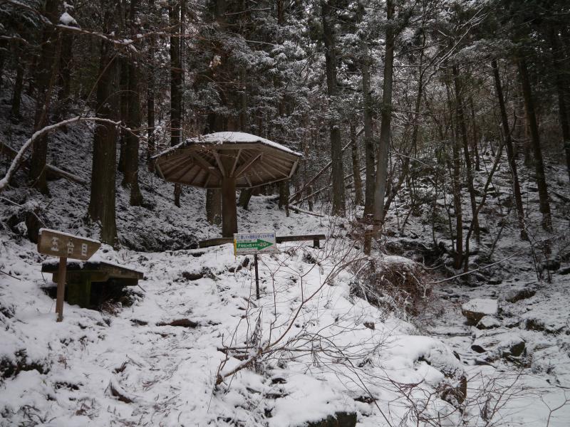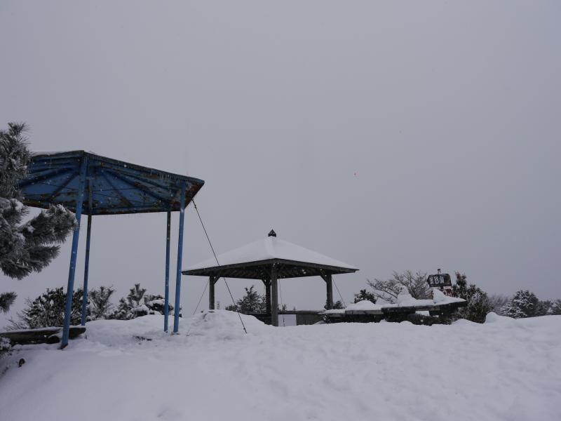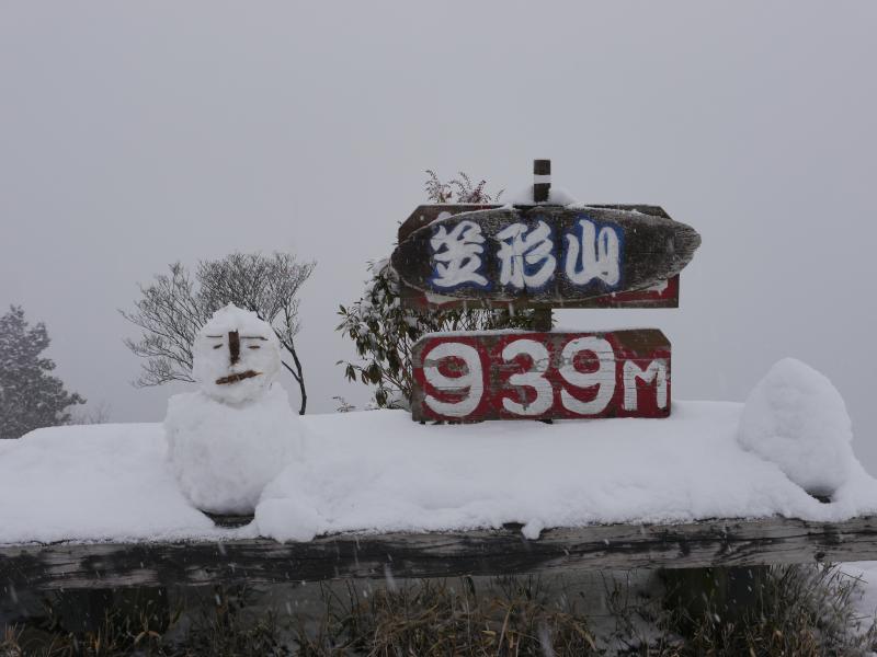笠形山頂上は誰もいなくて貸し切り状態で気持ちのいいものですが、雪が降り続くので展望は効きませんでした。