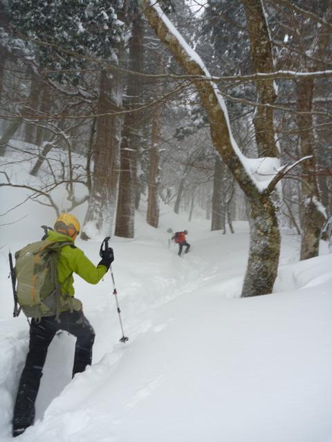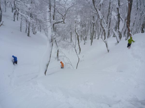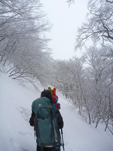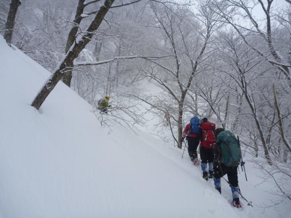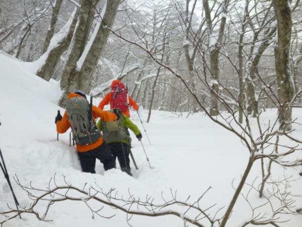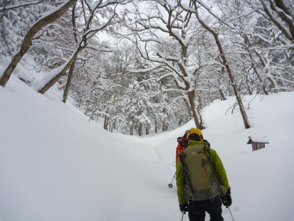 夏にも同じコースを登った事がありますが、雪が積もっていることで坂が急になっていたり道しるべがなかったり進みにくかったです。雪はフカフカだったのでワカンやスノーシューで元谷まで行けます。