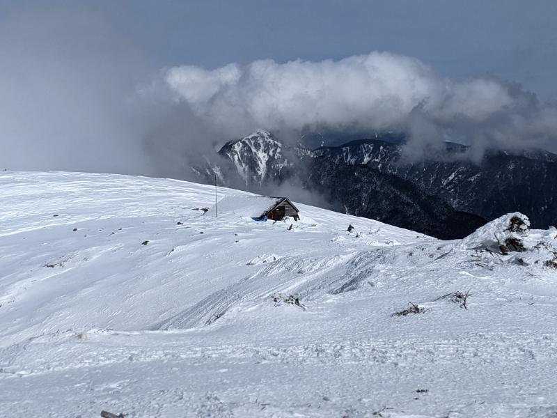 白骨温泉から入山、山スキーやスノーシューの方が何名か登られていました。
