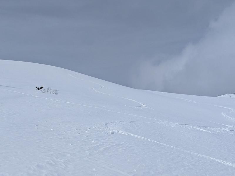 山頂よりオープンバーンを3本滑り、下山。晴れて気持ちの良い登山が楽しめました。