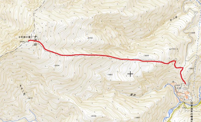 - 白骨温泉(60分)1800m台地(120分)十石山