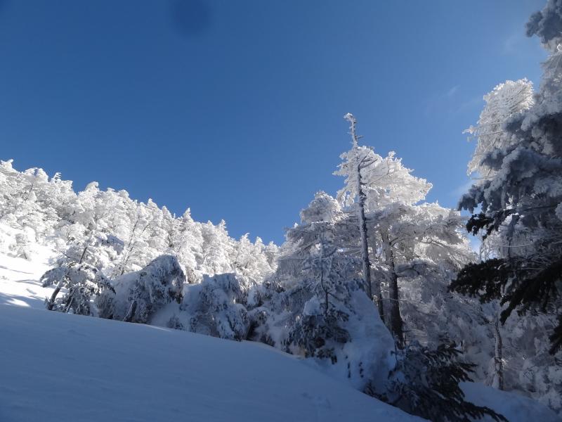冬季でも入山しやすい山で夏より人気が高いと言われていますが、深い樹林帯が樹氷を形成し、美しい。