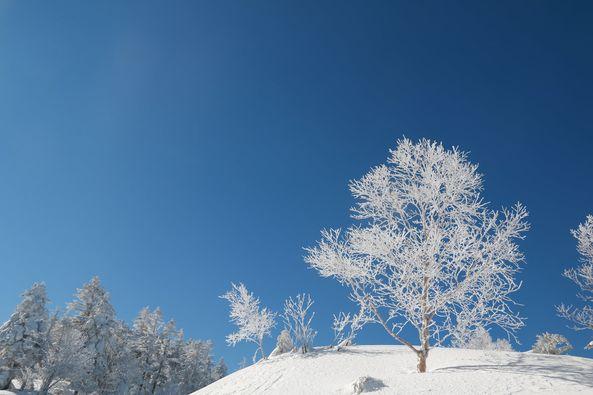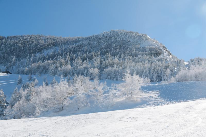 シャトルバスのオジサマが「今季で一番いい天気だよ~、快晴の霧氷 なかなかないよ~」と言って頂きテンションアップ。