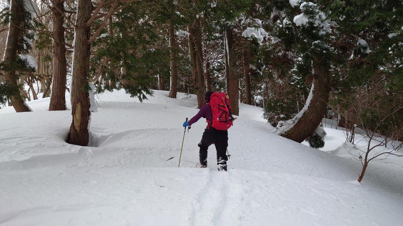 ⑤途中から右側に雪庇がありますが、規模は小さいです