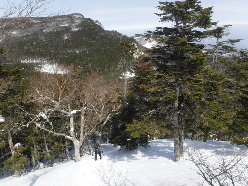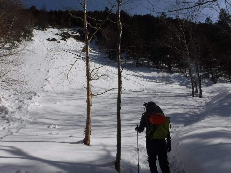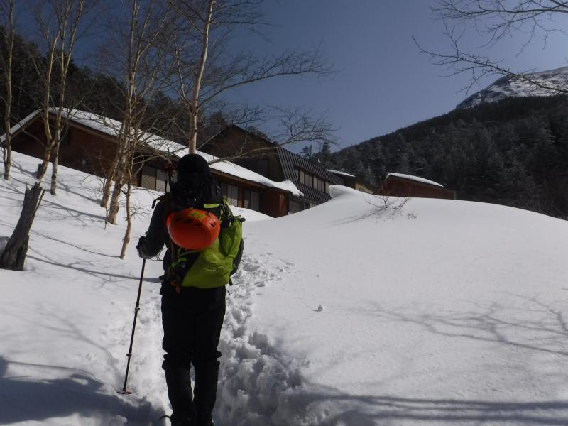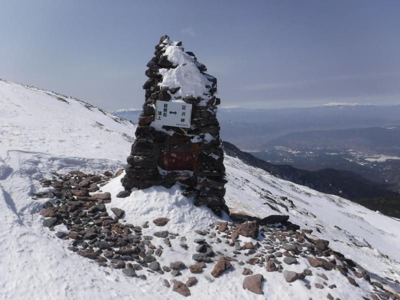 オーレン小屋から硫黄岳に登るコースは2通りありますが、赤岩の頭に詰めるコースは冬期通行禁止なので夏沢峠経由で登りました。