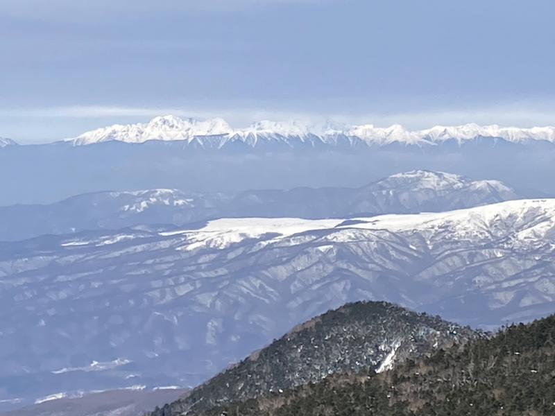 山頂からは南八ヶ岳オールスターズを筆頭に、北アルプスから南アルプスまで一望できました。