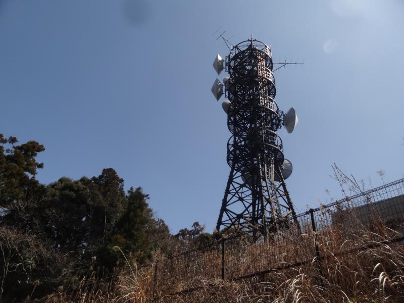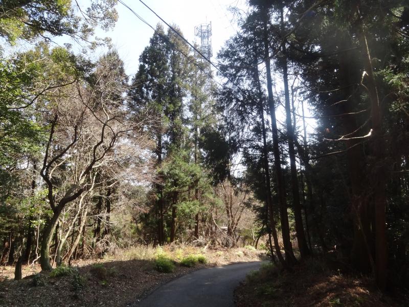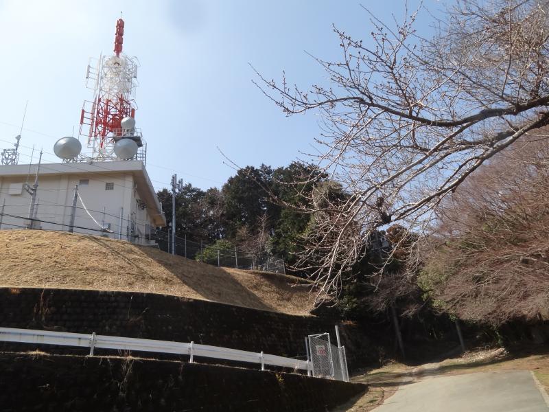 ⑦山頂はここから続く未舗装林道を進むと、電波塔の逆側に三角点がある頂上あり
