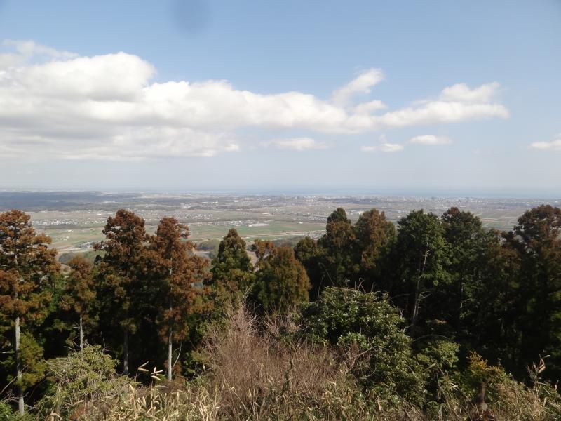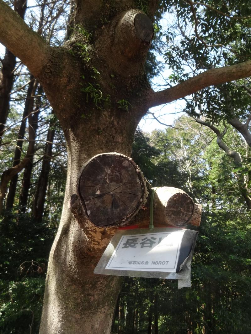 今回は長谷寺から林道合流点までだけが登山道でやや急な樹林帯の道で、後は舗装路か階段になります。林道合流点からほどなく電波塔がある展望広場に到着しますが、ここが唯一、展望がある場所で遠くセントレアが見えました。ここから山頂はすぐでしかも傾斜もなく林道を進むだけです。山頂には三角点とプレートがあります。