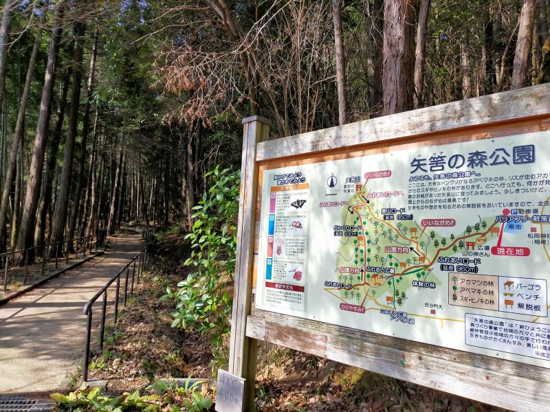 - 駐車場10分分岐35分愛の石10分山頂ドングリロードから下山40分ふれあい広場15分駐車場