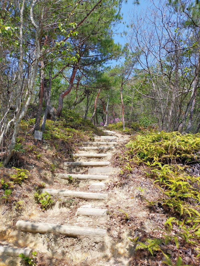 ぐるっと一周できるコースです。登りは階段道から登りましたが、展望がよく、所々にあるベンチも階段で疲れた足にいいタイミングで現れます。
