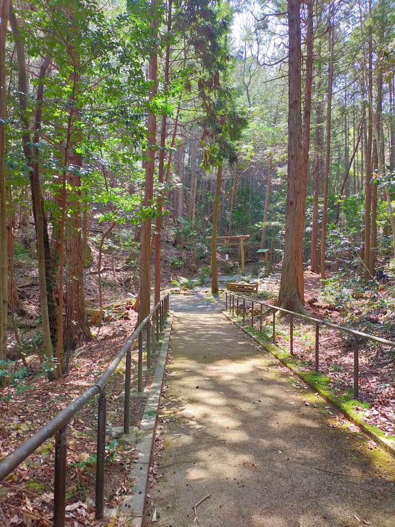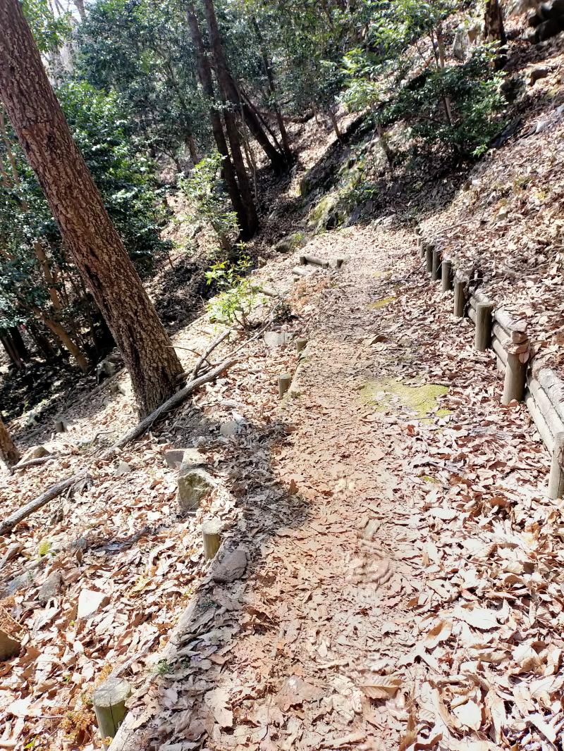 - 階段道は展望のいいところはたくさんあります。ベンチも多いです。どんぐりロードは高い木々の中緩い下りを歩きます。落ち葉で見えにくいところもあります。