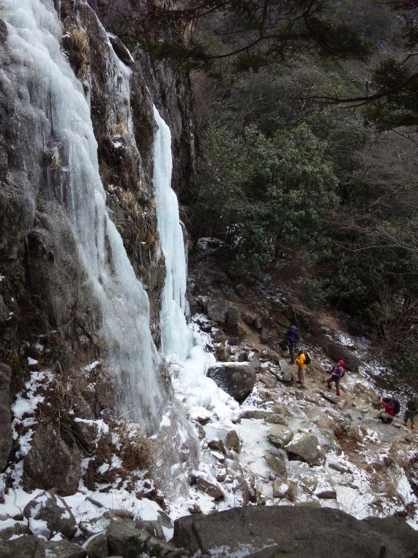 難所ヶ滝周辺は厚い氷が張っています。必ずアイゼンを持っていきましょう!
