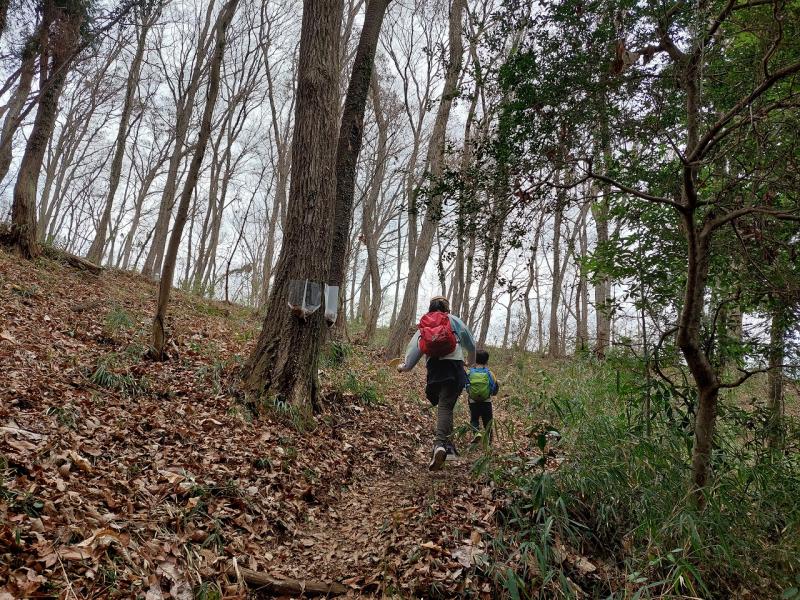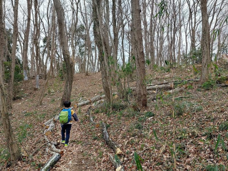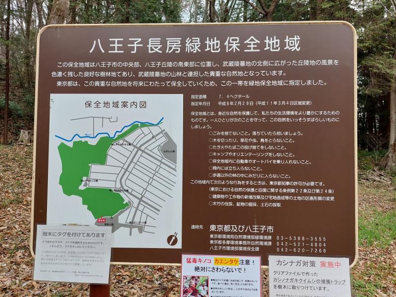 - 高尾駅(30)多摩御陵(10)陵東公園(30)カタクリ山山頂(5)カタクリ群生地(50)高尾駅