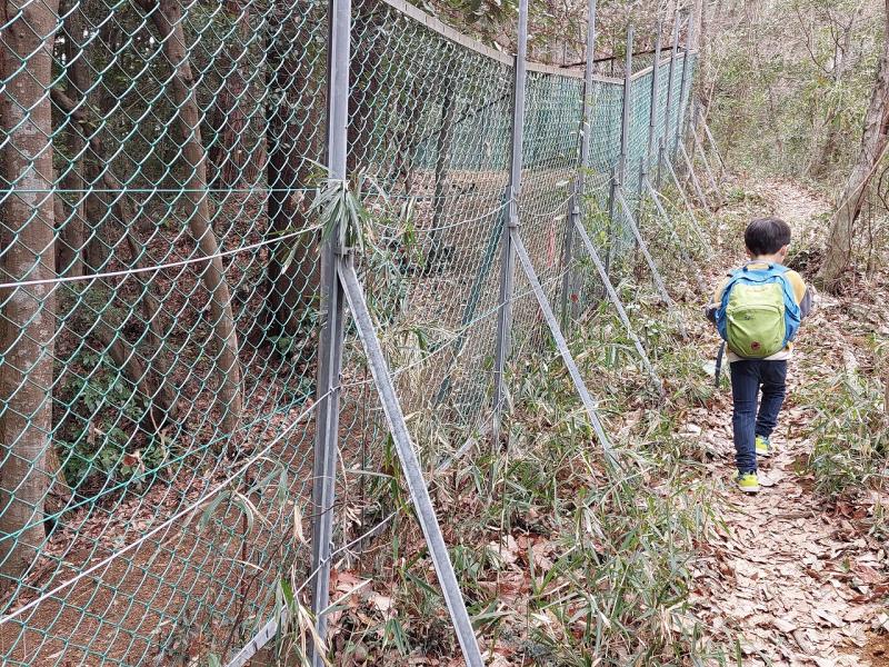 散策路沿いに植生保護のためのフェンスが設置されています。