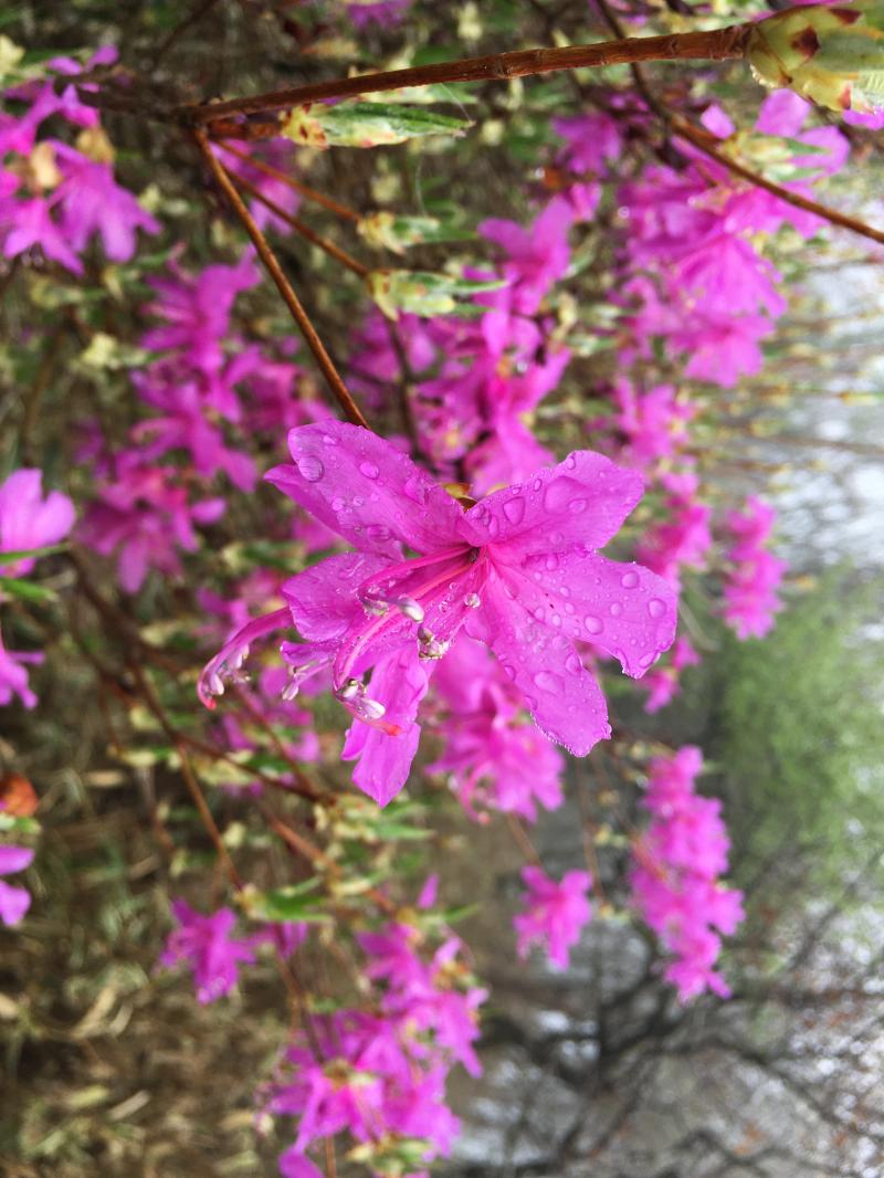 ミツバツツジが開花時期だったこともあって花が密集しているところにはクマバチがたくさん訪花していましたが、一般的に思われているよりクマバチは穏やか性質のハチで、オスに至っては針がないので刺されることはありません。羽音が近くで聞こえるとその重低音にどうしても恐怖を覚えますが問題なし。