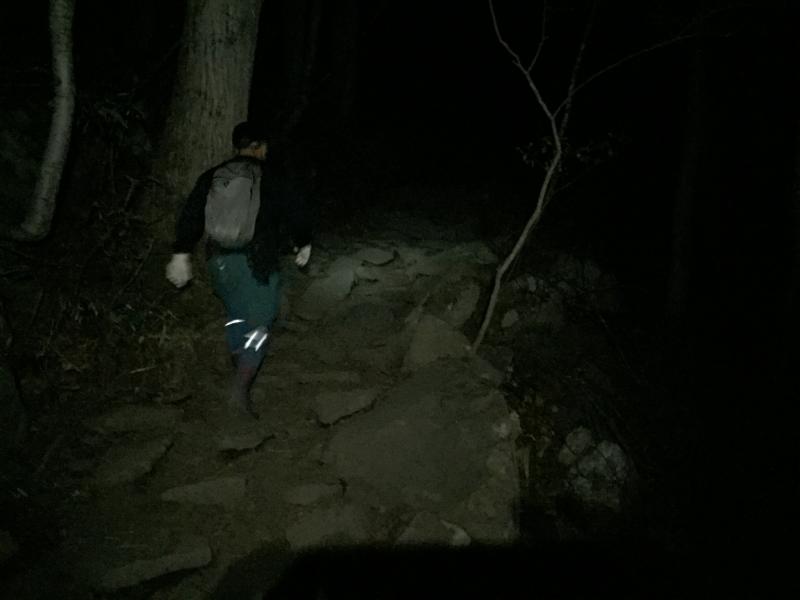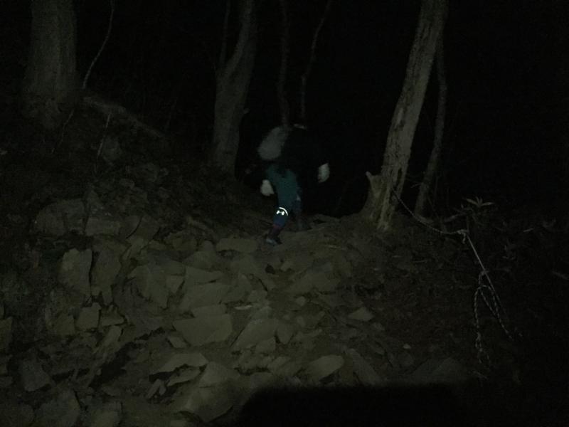 山頂直下はやや岩場っぽくなっていますが、ヘッドライトのおかげで難なく通過