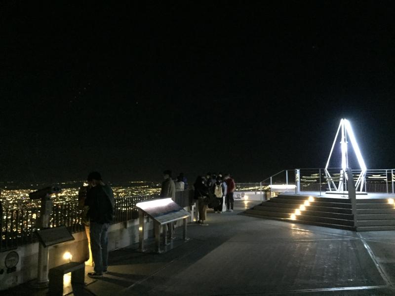 展望台には夜景を見るために訪れた観光客がたくさんいました