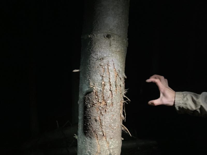 まずはヒグマの爪痕チェックへ!!さらに緊張感があがりました。