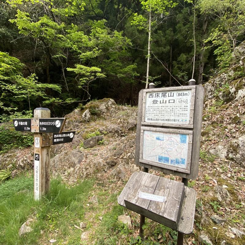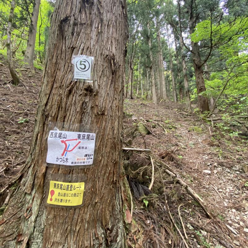 - 糸井の大カツラ手前駐車場-10-糸井の大カツラ-40-東床尾山-65-西床尾山-55-糸井の大カツラ手前林道分岐