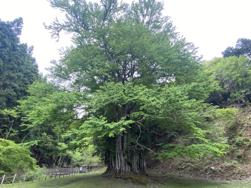 登山口駐車場から歩いて近くに大カツラの木があり、