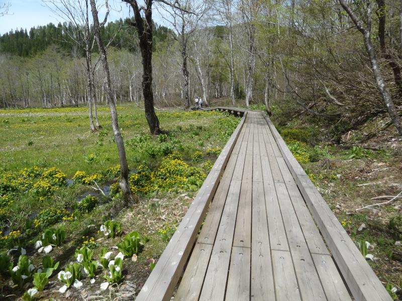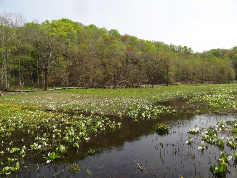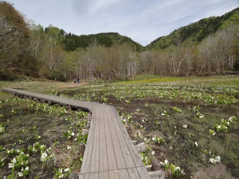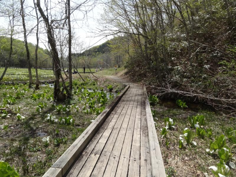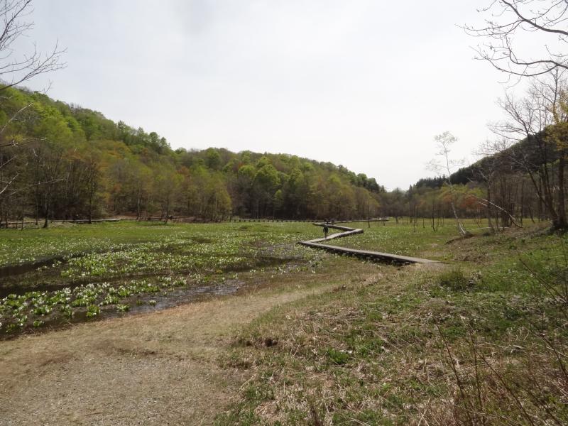 今回はGWに見頃を迎える水芭蕉を求めて歩いてきました。天生湿原のように湿原の上に山があるわけではないので、この湿原のみの散策になり、ほぼ木道歩きに終始するので物足りなさは感じることでしょうが、新緑も綺麗なのでいい散策になります。