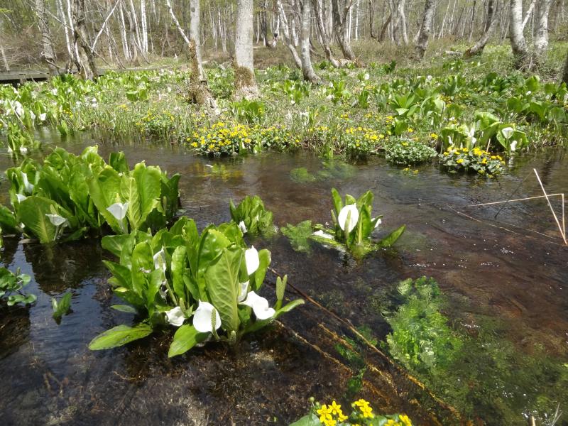 水芭蕉に関してもや全般的に見頃を過ぎた感じはありましたが、数株は水々しいものもありました。リュウキンカは見頃という感じで黄色の花が眩しかったです。
