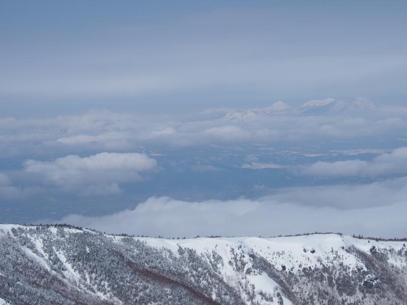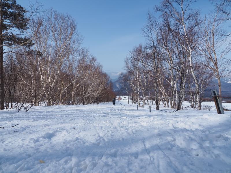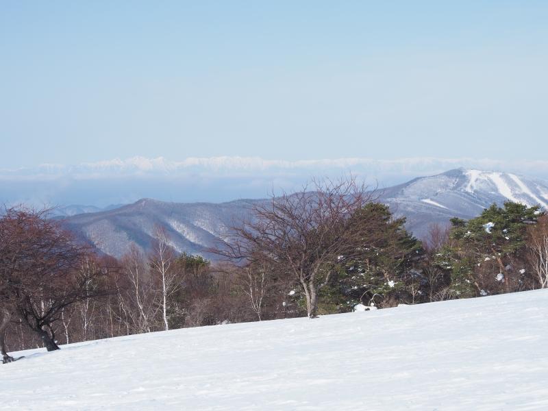 登山口からしばらく樹林帯を進むと広ーーい牧場に出ます。天気が良く圧巻の眺め。白い雪に太陽の光が反射して眩しい。
