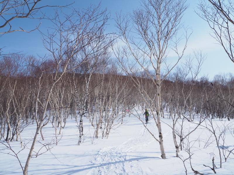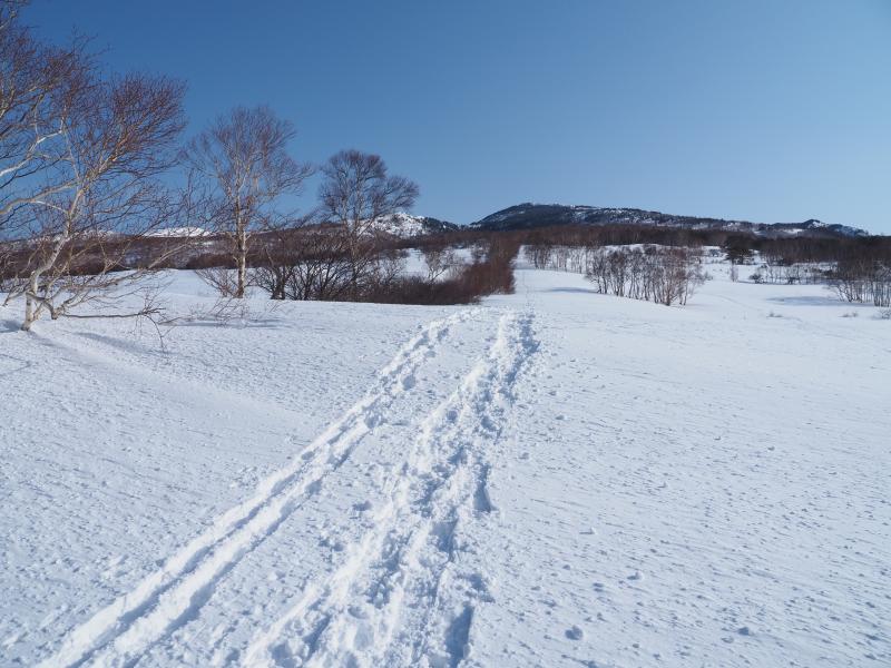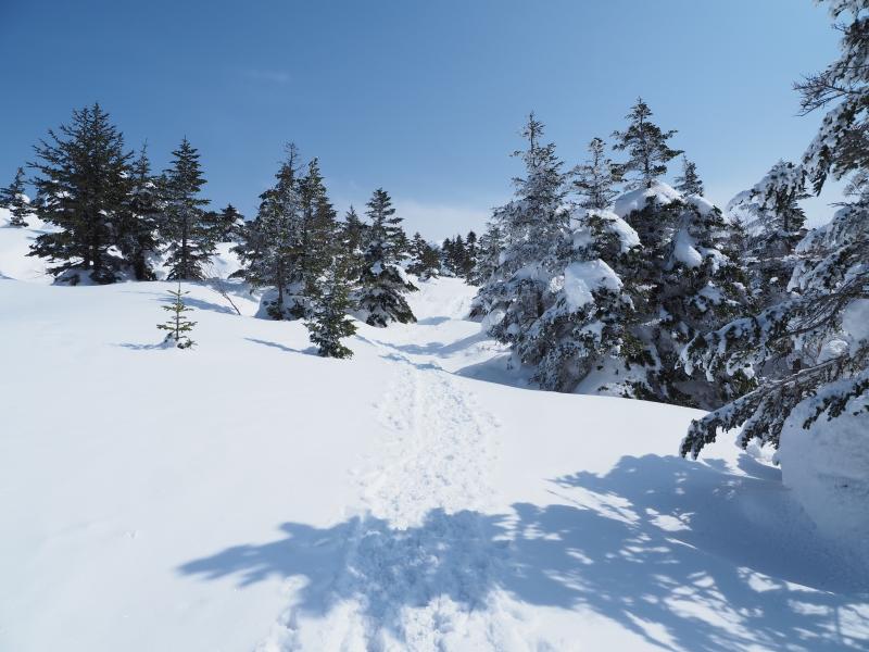どこを歩いても良さそうな広い斜面ですが一応トレースを辿ることにします。