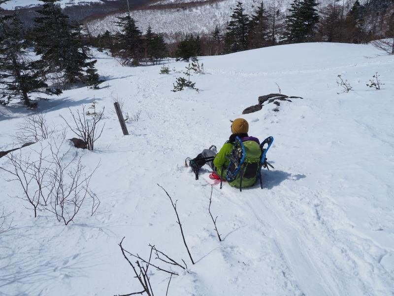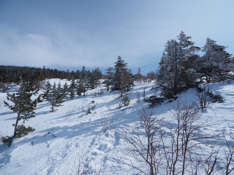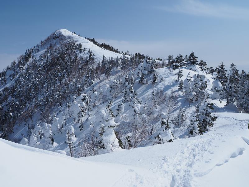 今回はスノーシューで前ルートを歩きましたが、急登ではアイゼンに履き替えてもいいかもしれません。
