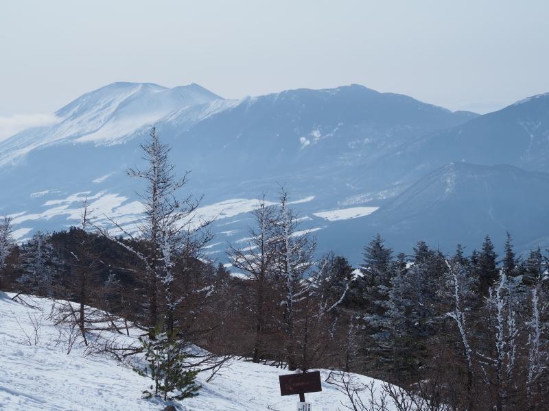 再び樹林帯に入り込み、次第に急登に。なかなかしんどい。8合目の看板を過ぎ登り詰めると浅間山の眺め。昨日見た黒斑山から見た時とはまた違ったスタイル。
