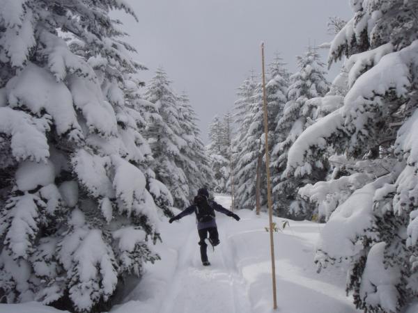- 降りたての雪がつもりトレースはあるもののずぼずぼ踏み抜く感じで少し歩きづらかったです。